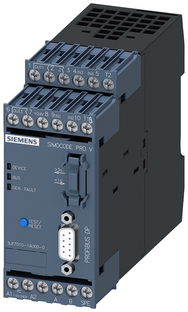 БАЗОВЫЙ МОДУЛЬ 2 SIMOCODE PRO V, PROFIBUS DP-ИНТЕРФЕЙС, 12 МБИТ/С, RS485, 4 ВХОДА / 3 ВЫХОДА СВОБОДНО ПАРАМЕТРИРУЕМЫЕ, US: AC/DC 110-240V, ТЕРМИСТОРНАЯ ЗАЩИТА ДВИГАТЕЛЯ, МОНОСТАБИЛЬНЫЕ ВЫХОДЫ